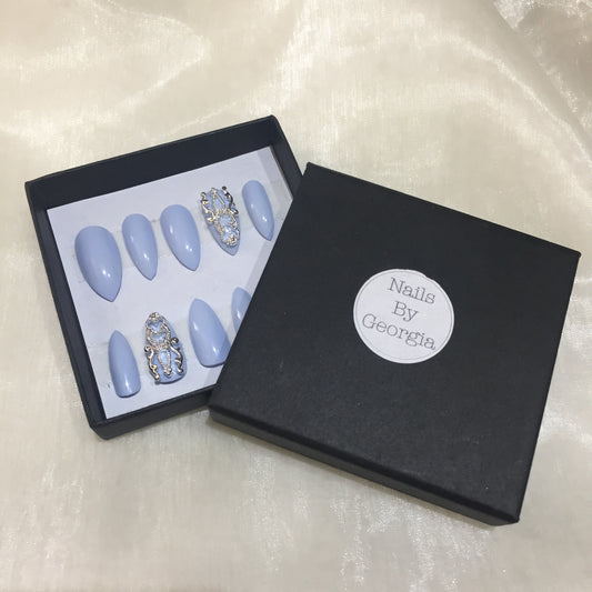 Pastel Blue Stilettos with Silver Charm