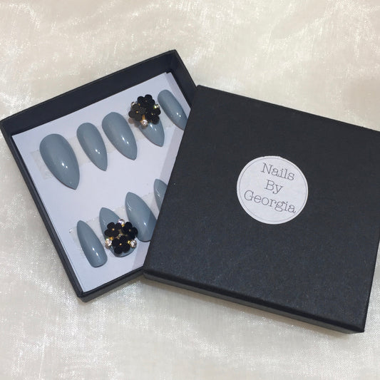 Grey Stilettos with Black Roses