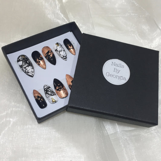 White and Black Marble Copper Stilettos