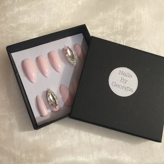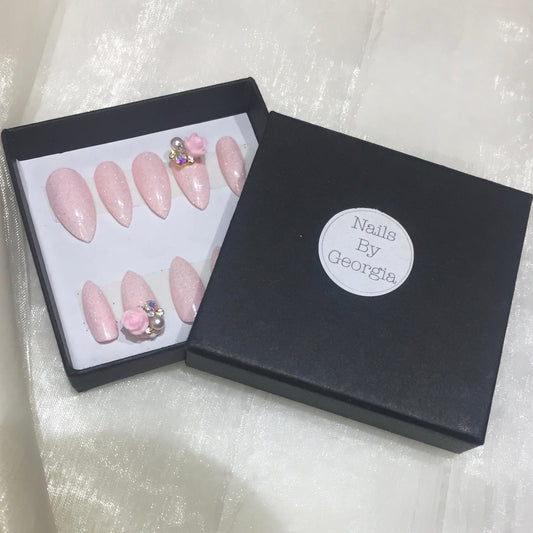 Baby Pink Stilettos with Holographic Glitter and Rose Charm
