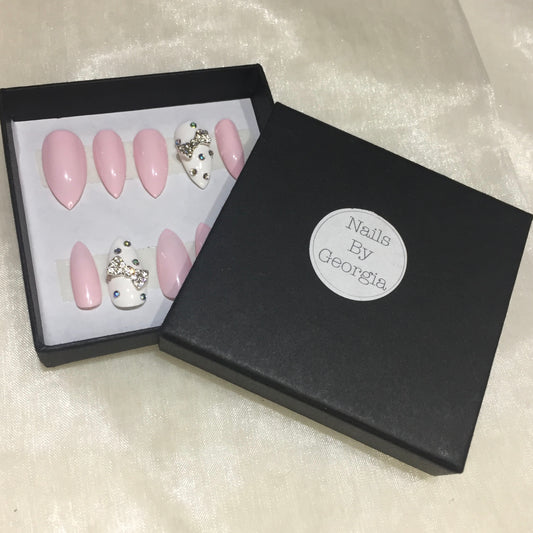 Pink and White Stilettos with Rhinestones and Bow Charm