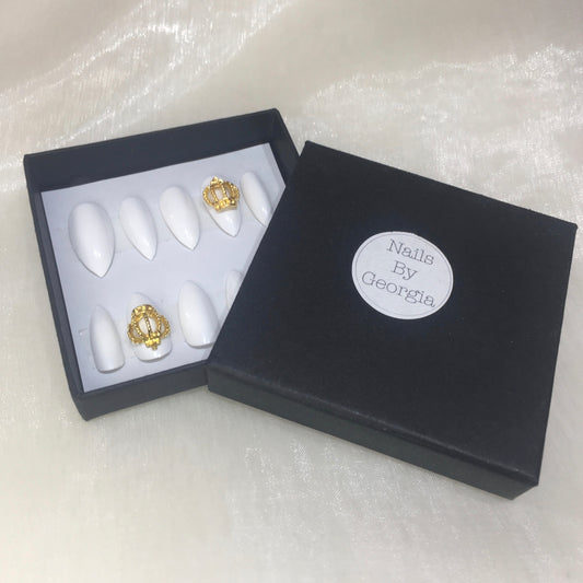 White Stilettos with Crown Charm
