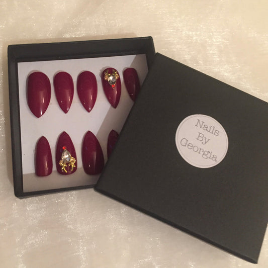 Save the Elephants Maroon Stiletto Nails
