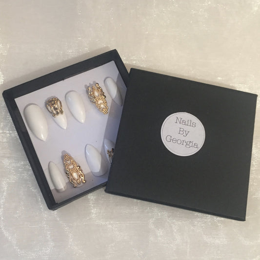 White Stilettos with 3D Gold Charms